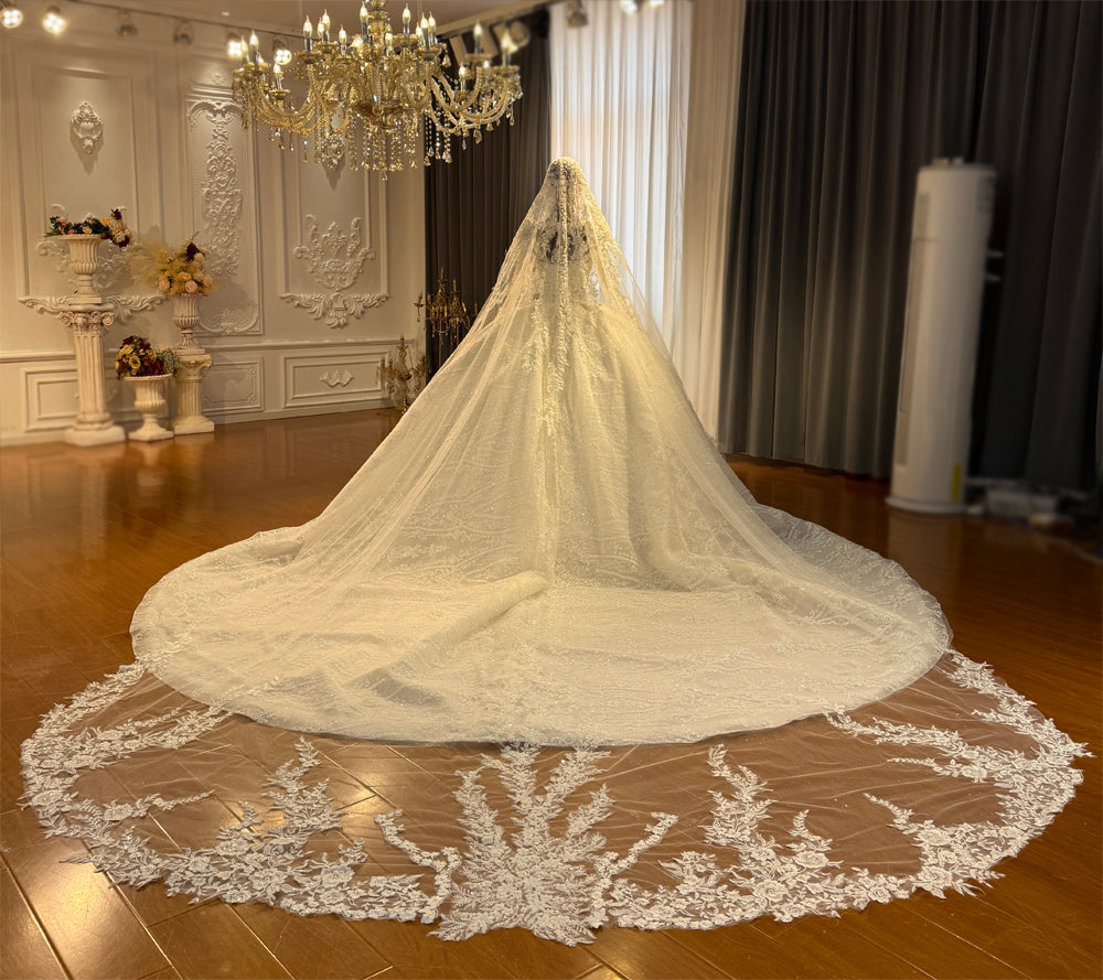 Velo largo brillante con apliques de encaje de lujo Amanda Design 2023