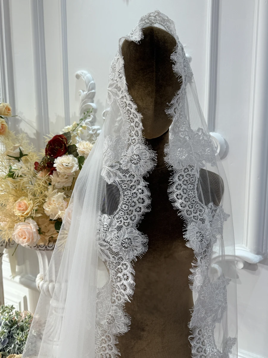 Amanada Novias luxury lace border long wedding veil